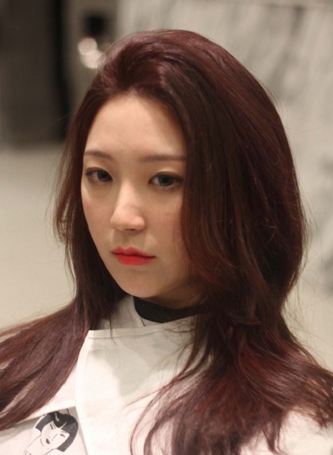 시술명: 레드와인 컬러 특징: 레드와 보라빛이 적절히 조화되어 은은하고 고급스러운 느낌 연출 시술방법: 브라운, 레드, 그리고 바이올렛의 비율을 잘 조절하여 고급스러운 컬러를 연출 추천하는 고객: 봄에 어울리는 화사한 컬러를 원하는 경우