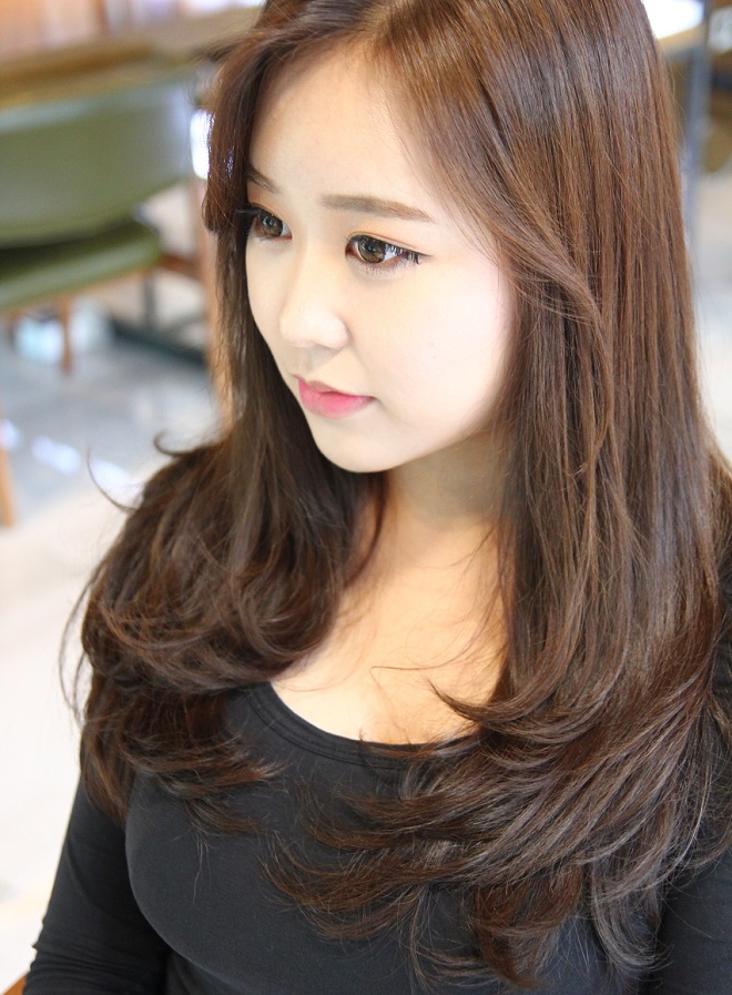 시술명: 세팅펌 시술방법: 레이어컷으로 무거운 느낌을 줄이고, 인사이드에서 떨어지는 C컬 웨이브로 과한 볼륨감을 줄이면서 자연스럽게 흐르듯이 펌시술,   밀크브라운으로 자연스러운 느낌 글래머러스한 이미지 연출 추천하는 사람: 부드럽고 여성스러운 이미지를 원하는 경우, 과한 볼륨이나 컬보다 자연스러운 이미지를 원하는 경우