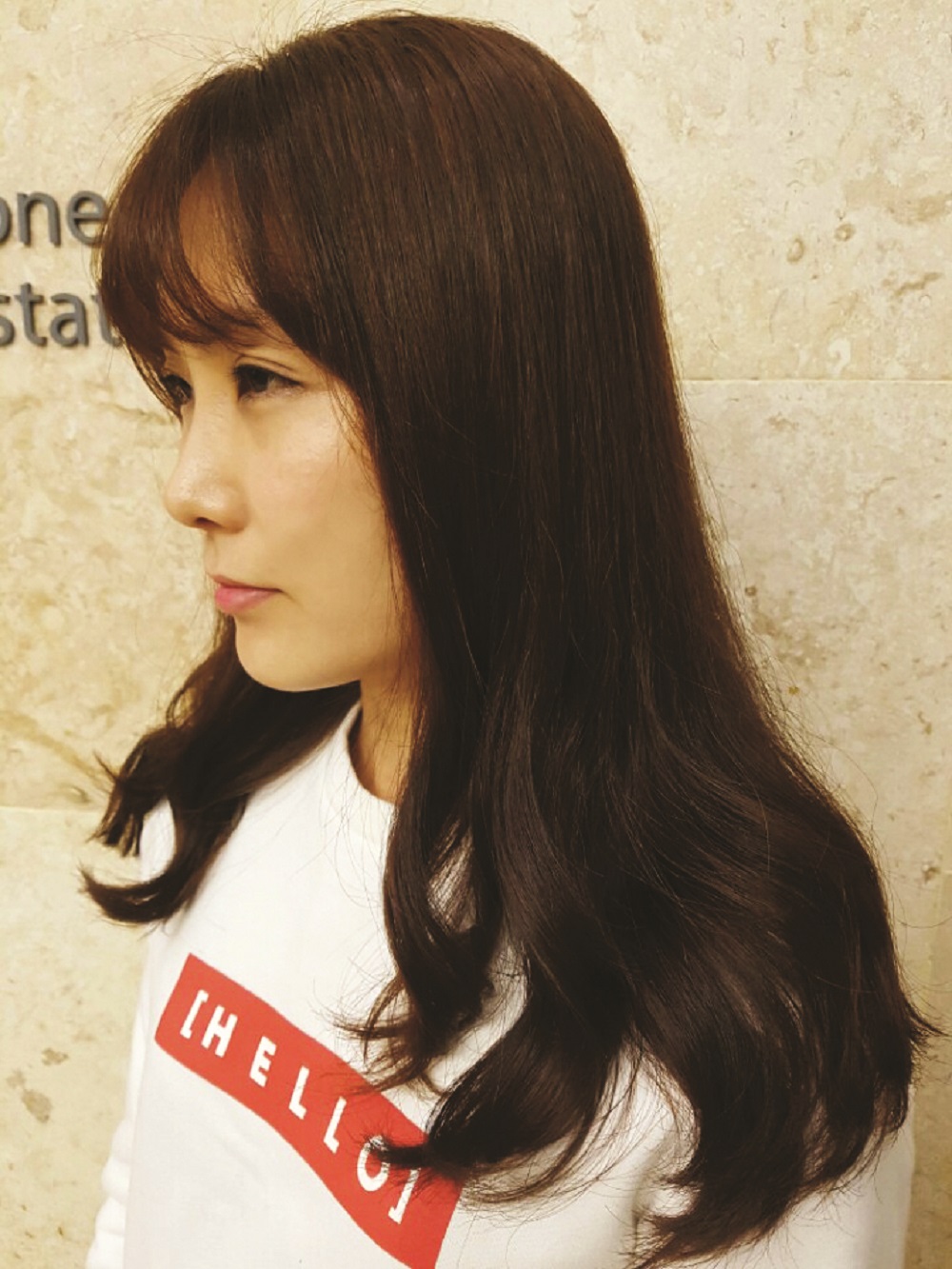 시술명: 글램펌 특징: 레이어컷 후, C컬과 S컬을 조화시켜 자연스러운 스타일 연출 과정: 레이어로 가볍게 컷 후, 윗부분은 매직시술 후, 밑 머리만 굵게 웨이브 작업 추천고객: 손질 및 관리과 쉬운 스타일을 원하는 분, 자연스럽고 물흐르듯 흐른는 느낌의 웨이브를 원하는 분