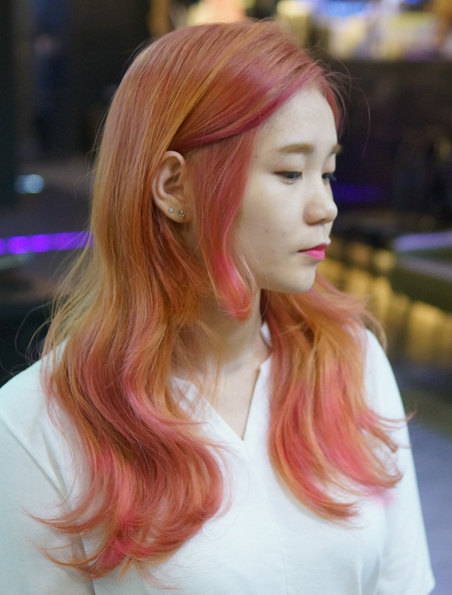 기존의 옴브레 디자인에서 한번 더 전체 탈색하여 비비드 컬러가 아닌 파스텔톤으로 입힌 디자인
