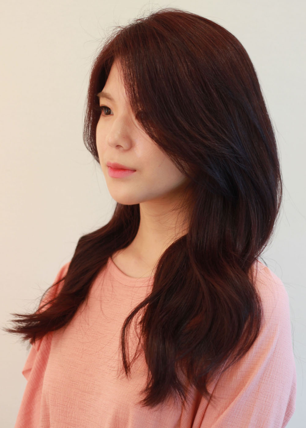 시술명: 버건디 레이어드 펌 특징: 전제적인 볼륨 디자인 추천고객: 손질이 편하고 전체적인 볼륨을 원하시는 분
