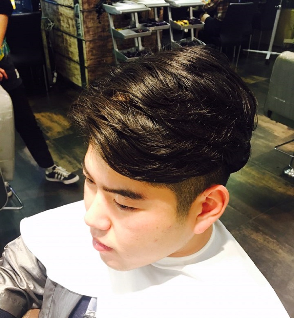 시술명: 가르마펌 특징: 투블럭 스타일에 6:4 가르마 펌으로 부담스럽지 않은 스타일 추천고객: 자연스럽고 부드러운 이미지를 원하는 분