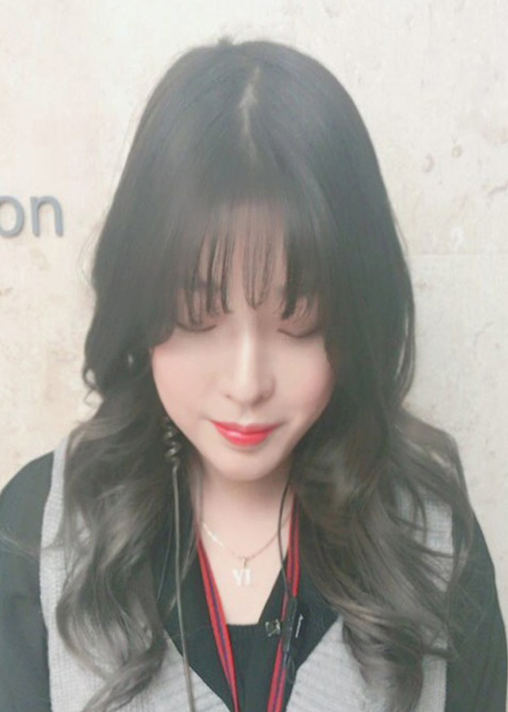 특징: 자연스럽게 레이어로 컷트 후 밑머리만 옴브레그라데이션으로 탈색 3~4번정도 진행 후 윗머리와 밑머리를 밝기가 다른 애쉬그레이로 염색 중간 부분은 핸들링으로 자연스럽게 연결