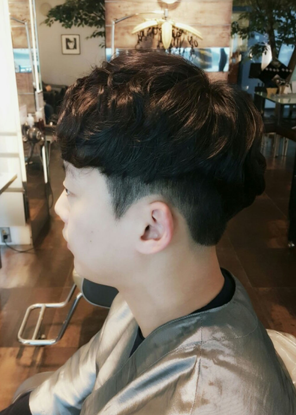 시술명 : 투블럭댄디펌 특징 : 머리손질이 가장 쉬운 댄디펌 추천고객 : 자연스러운 볼륨을 원하시는 남자 고객