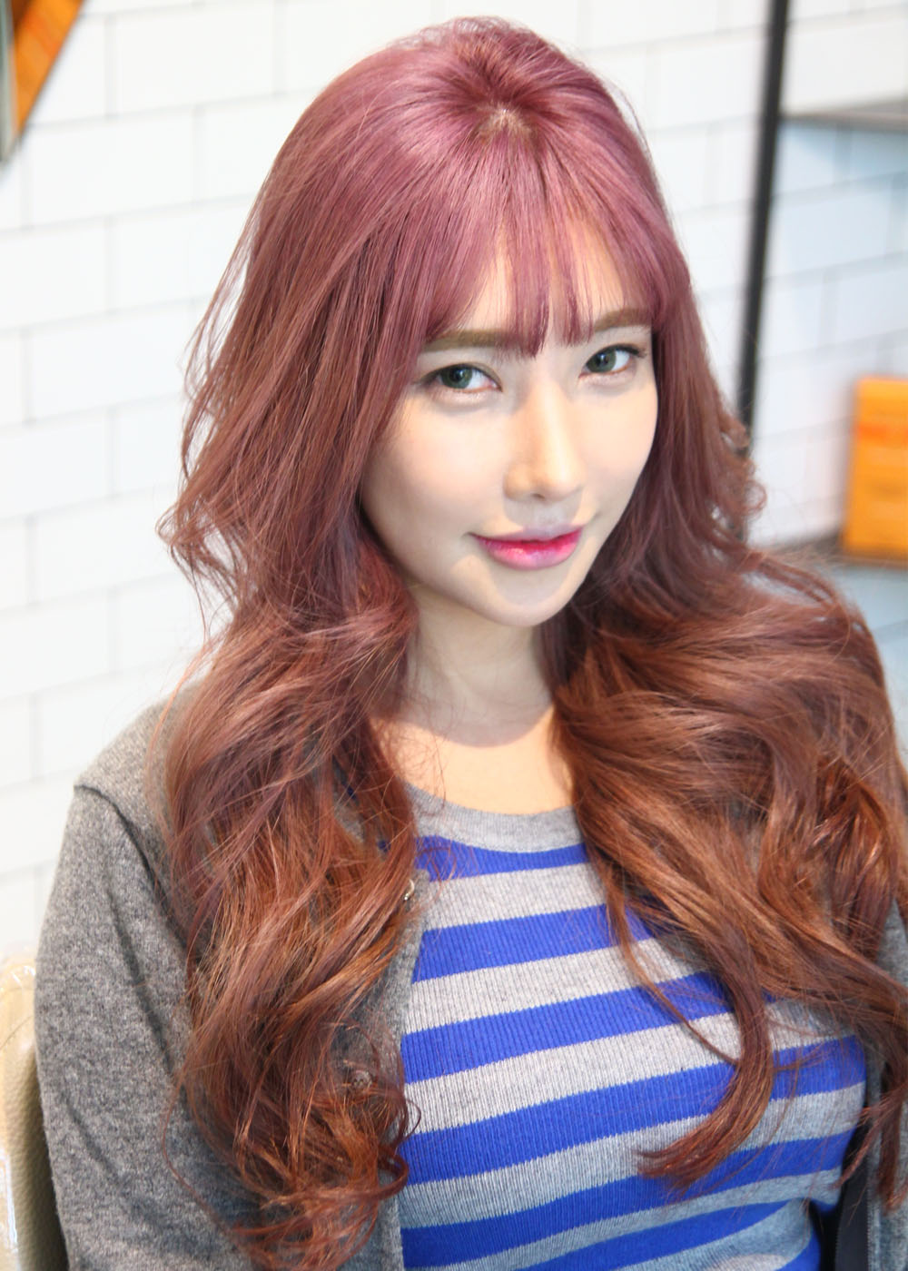 작품명 : 핑크브라운 시술방법 1.컷트:약간의 레이어로 무거운 느낌을 줄이되 깔끔하고 단정한 분위기로 컷트 시술, 미들파트에 양감처리로 상대적으로 가볍게 컷트시술 2.펌:인사이드에서부터 떨어지는 s컬웨이브로 과한 볼륨감을 줄이면서 자연스럽게 흐르듯이 펌시술 3.염색: 13level정도의 밀크브라운으로 자연스러운 느낌에 부드러운 이미지 시원하고 글래머러스한 이미지 연출