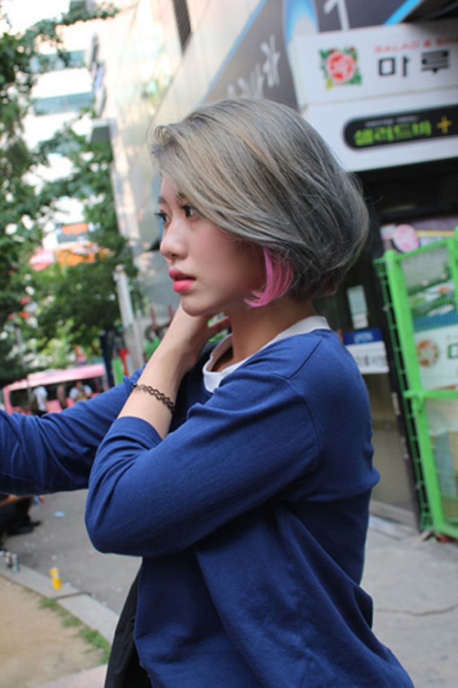 디자인컬러 / 포인트염색 애쉬그레이 + 핑크 포인트