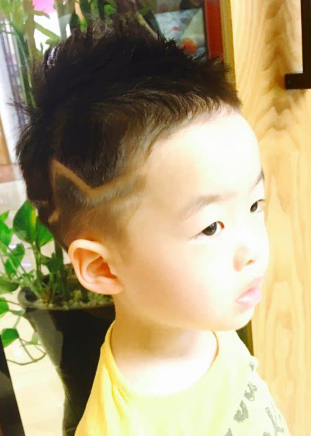 시술명 : 라이더 모히칸 시술방법 : 모히칸으로 커트 후 별모양의 스크래치작업 특징 : 키즈컷트의 대세 라이더모히칸!! 별모양의 스크래치가 대세!! 추천고객 : 남아키즈 고객