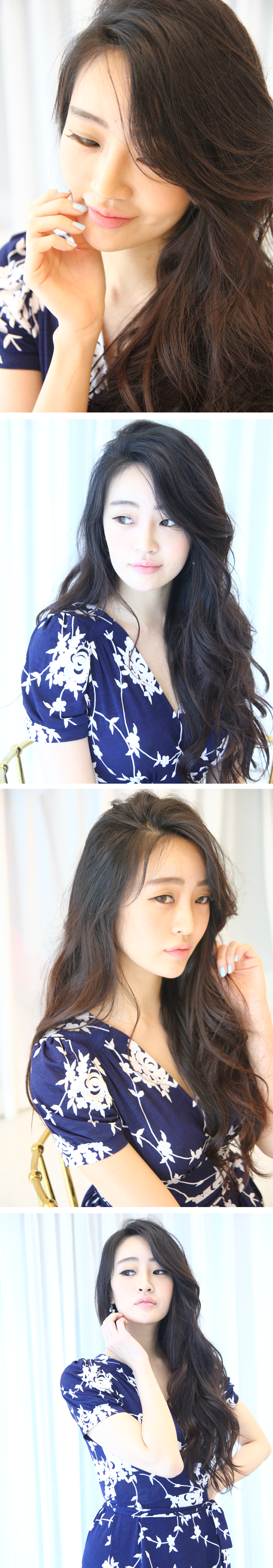 1.컷트: 앞머리를 길게 늘어뜨린 느낌에 베이직컷트선에 떨어지는 앞머리컷이 포인트