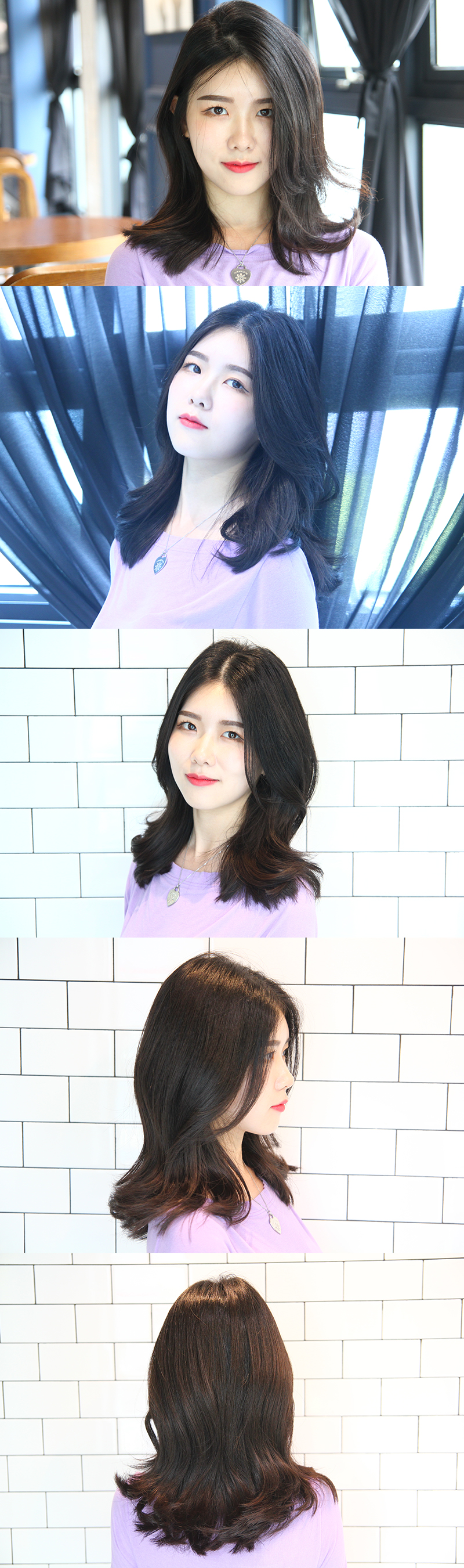 모발중간선부터 탄력있는 s컬펌 연출 와인딩시술시