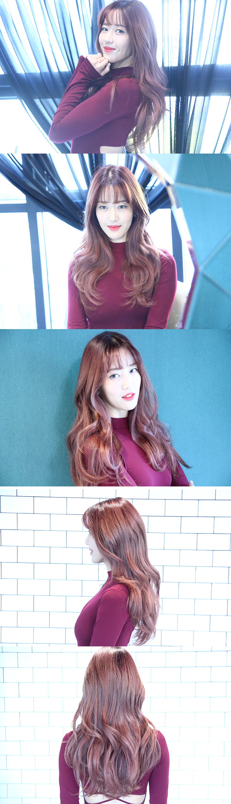 탈색시술후 레드브라운로 시크하고 엣지있는 느낌으로 연출