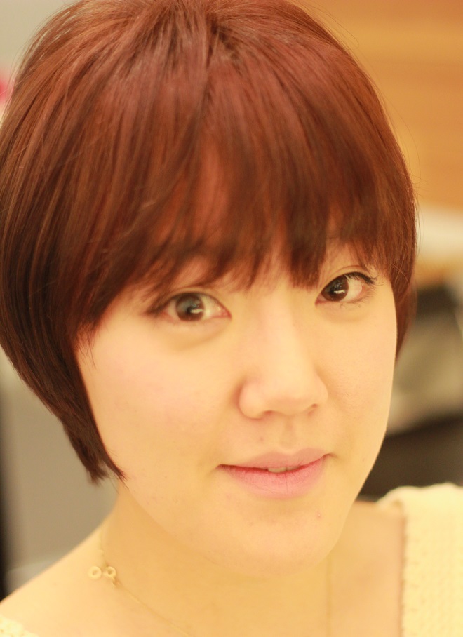 시술명: 레드브라운 볼륨펌 특징: 모던한 컬러와 유니크한 컷 라인이 살아 있는 크리에이티브한 스타일 추천하는 사람: 역삼각형의 얼굴형을 가진 경우, 가볍고 짧은 스타일을 선호하는 경우