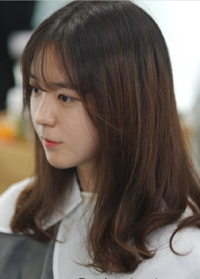 시술방법: 뿌리쪽은 볼륨펌을 위해 건강모펌제를, C컬과 S컬을 하기위해 염색되어 있는 머리 끝은 손상모펌제를 도포한 후, 아래는 C컬과 S컬펌의 디지털 와인딩과 매직작업, 뿌리펌 작업.