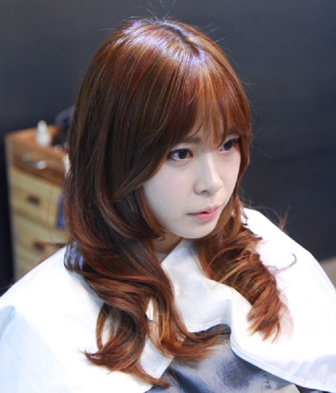 시술명: 골드 오렌지 브라운 특징: 골드브라운과 카퍼계열의 오렌지 브라운 포인트 컬러로 피부는 더욱 하얗고 생기있어 보이는 컬러  시술법: 포인트 컬러인 오렌지 브라운을 먼저 시술하여 분리하고, 골드브라운으로 나머지 부분을 염색 추천하는 분: 좀더 화사하고 생기있어 보이는 피부를 원하는 경우, 행하는 헤어컬러 보다는 나에게 어울리고 피부색을 고려하여 자신이 연출하고 싶은 이미지의 컬러를 만들고 싶은 경우
